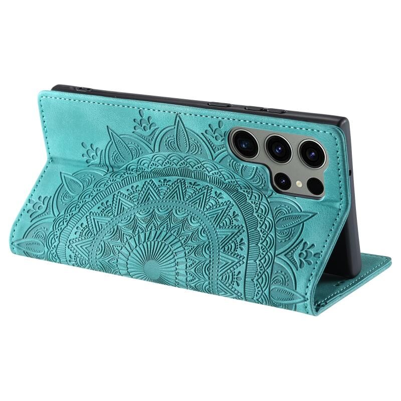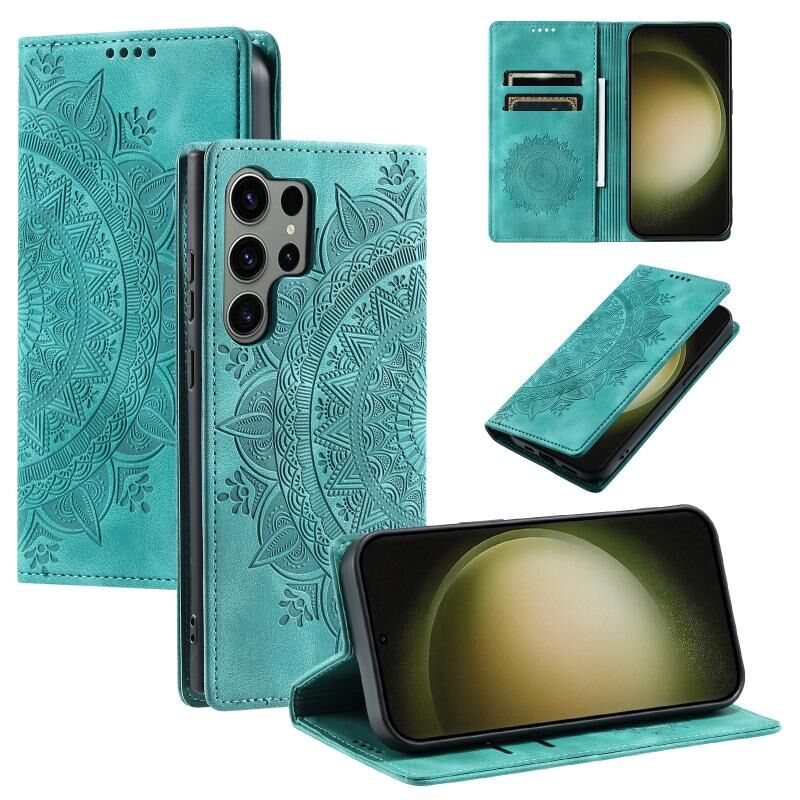 Για Samsung Galaxy S23 Ultra 5G Totem ανάγλυφη μαγνητική δερμάτινη θήκη τηλεφώνου (πράσινο)