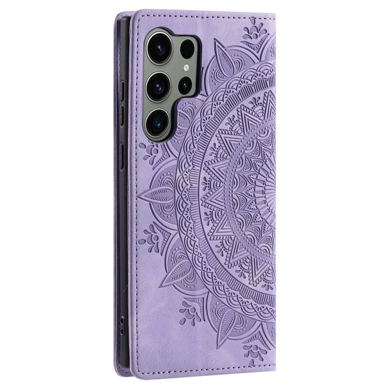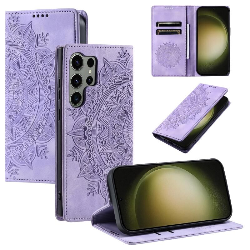Για Samsung Galaxy S23 Ultra 5G Totem ανάγλυφη μαγνητική δερμάτινη θήκη τηλεφώνου (μωβ)