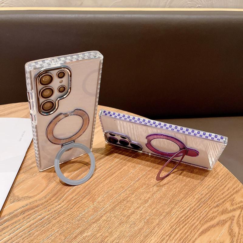 For Samsung Galaxy S23 Ultra 5G Transparent MagSafe Holder Phone Case with Lens Film(Black)