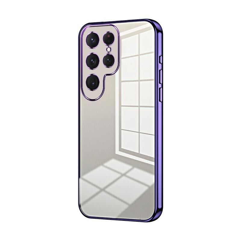 Για Samsung Galaxy S23 Ultra 5G Διαφανής επιμετάλλωση Fine Hole υπόθεση τηλεφώνου (μωβ)