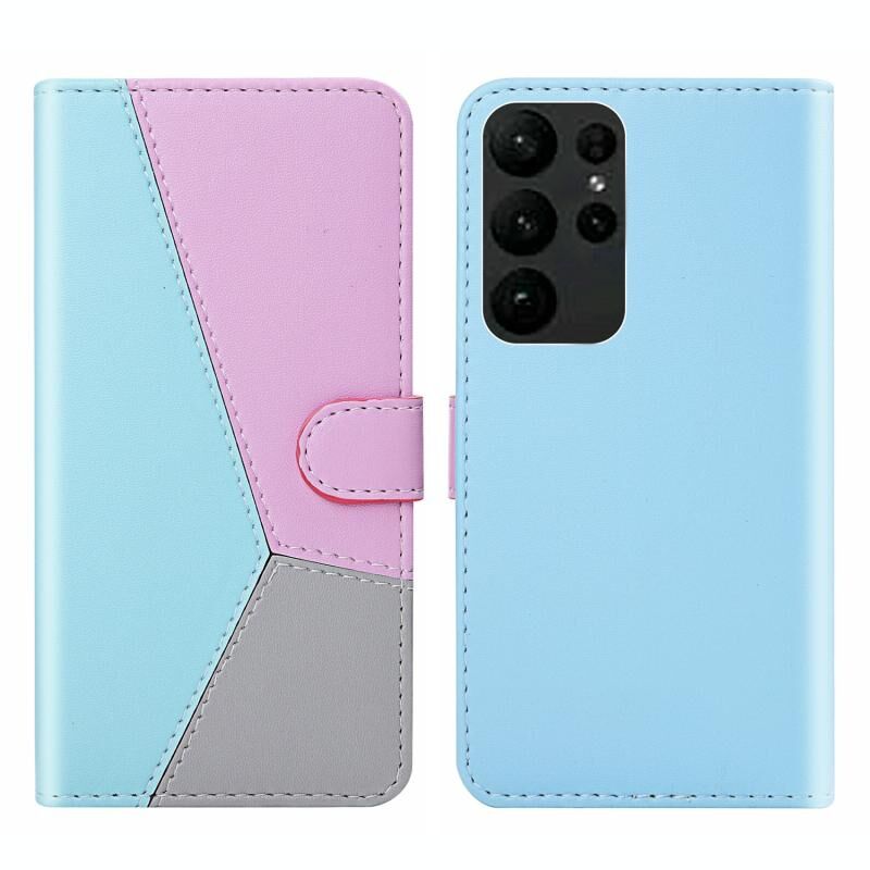 Για το Samsung Galaxy S23 Ultra 5G τρίχρωμη ραφή Flip δερμάτινη θήκη τηλεφώνου (μπλε)