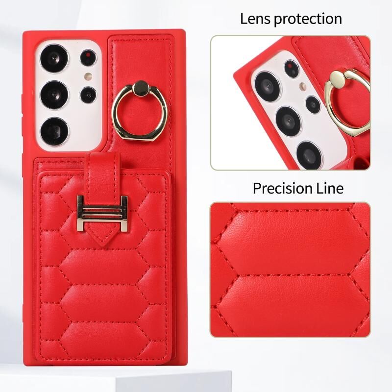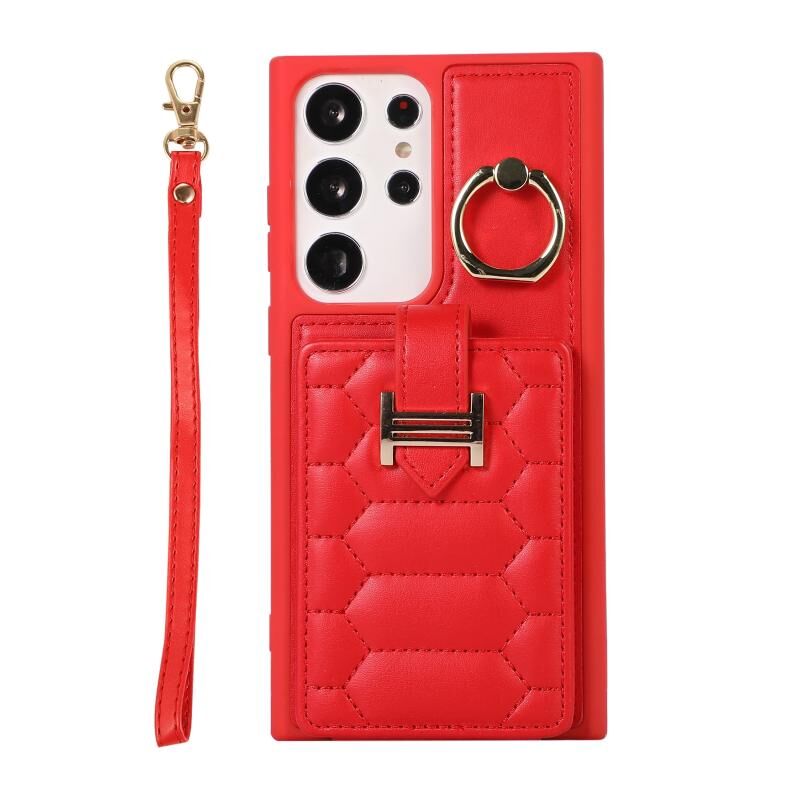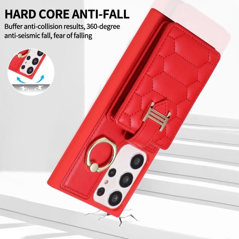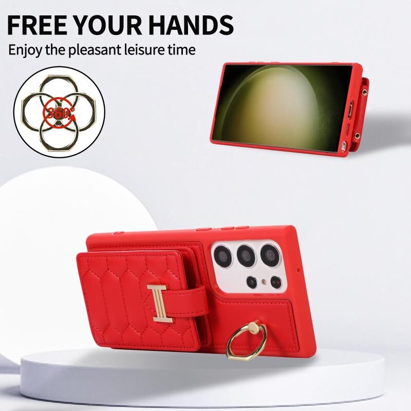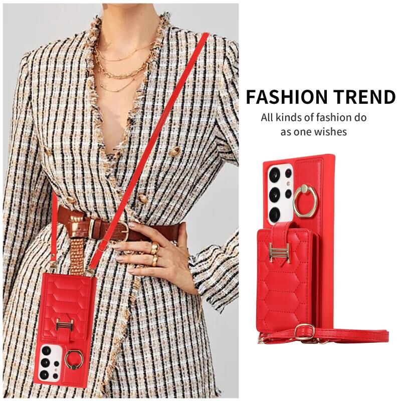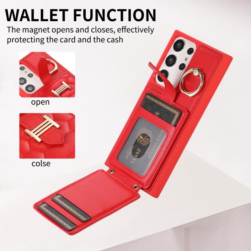 Για Samsung Galaxy S23 Ultra 5G Κάθετη κάρτα τσάντα δαχτυλίδι κάτοχος υπόθεση τηλέφωνο με διπλό κορδόνι (κόκκινο)