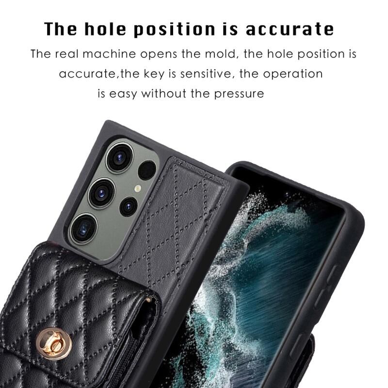 Για το Samsung Galaxy S23 Ultra 5G Κάθετη πορτοφόλι ρομβοειδής δερμάτινη θήκη τηλεφώνου (Μαύρο)