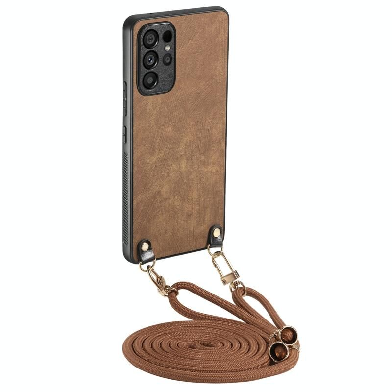 Για Samsung Galaxy S23 Ultra 5G εκλεκτής ποιότητας δέρμα PC πίσω κάλυμμα τηλέφωνο υπόθεση με λουράκι σταυρού (καφέ)