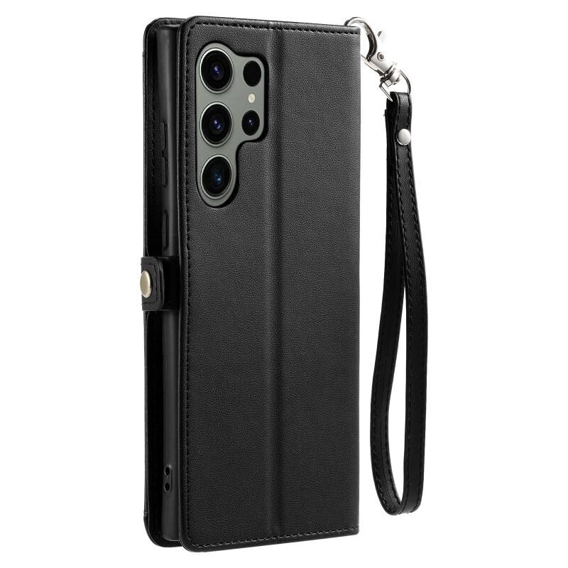 Για Samsung Galaxy S23 Ultra 5G Πορτοφόλι Multi-card Slot Δερμάτινη θήκη τηλεφώνου με κορδόνι (Μαύρο)