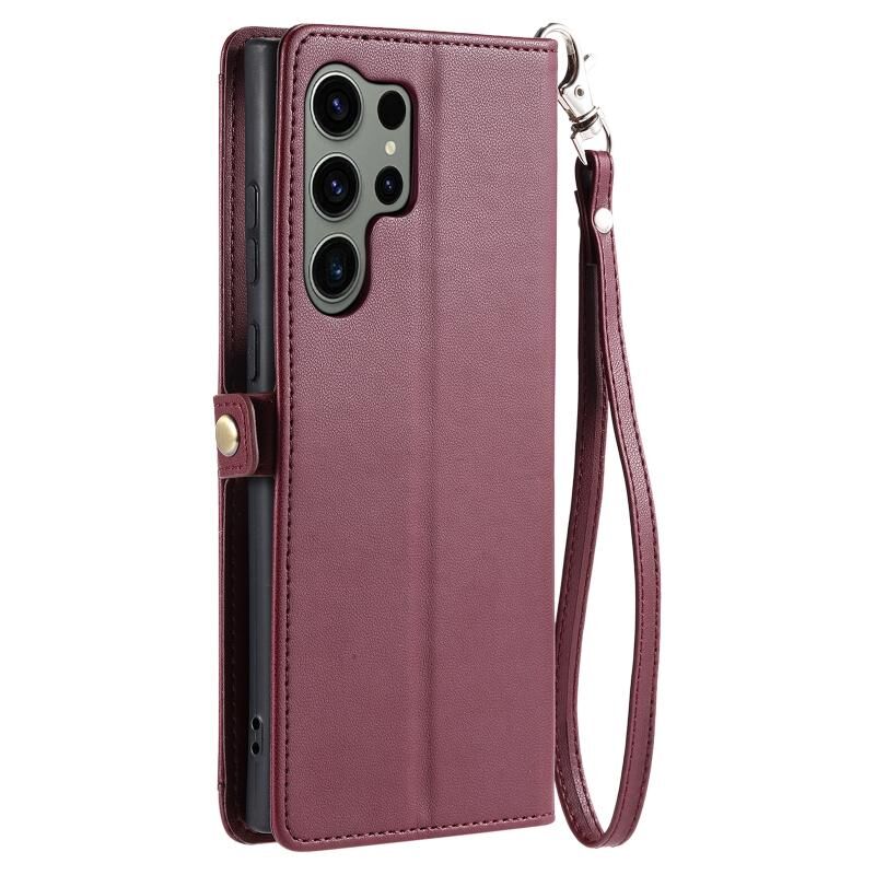 For Samsung Galaxy S23 Ultra 5G Wallet Multi-card Slot Leather Phone Case with Lanyard(Wine Red)