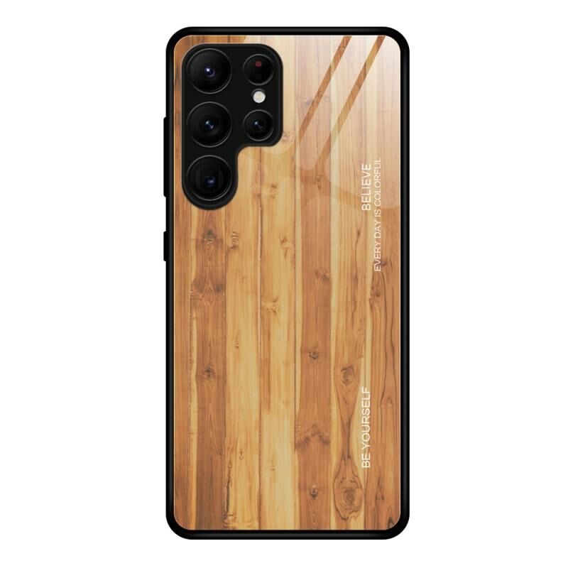 Για Samsung Galaxy S23 Ultra 5G Wood Grain Glass Phone Case (Κίτρινο)