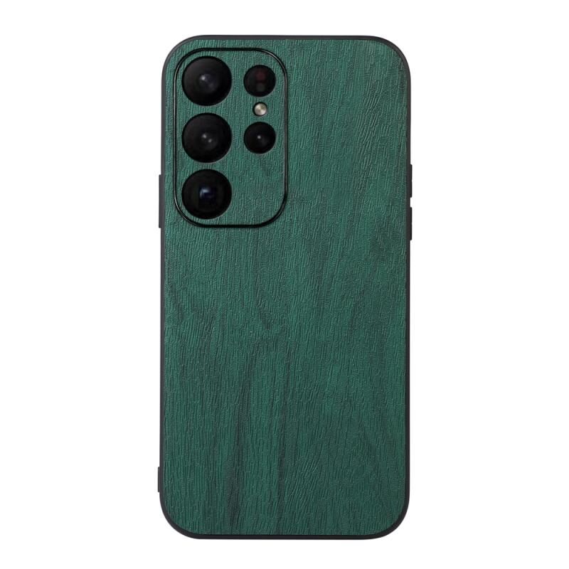 Για Samsung Galaxy S23 Ultra 5G Wood Texture PU υπόθεση τηλεφώνου (πράσινο)