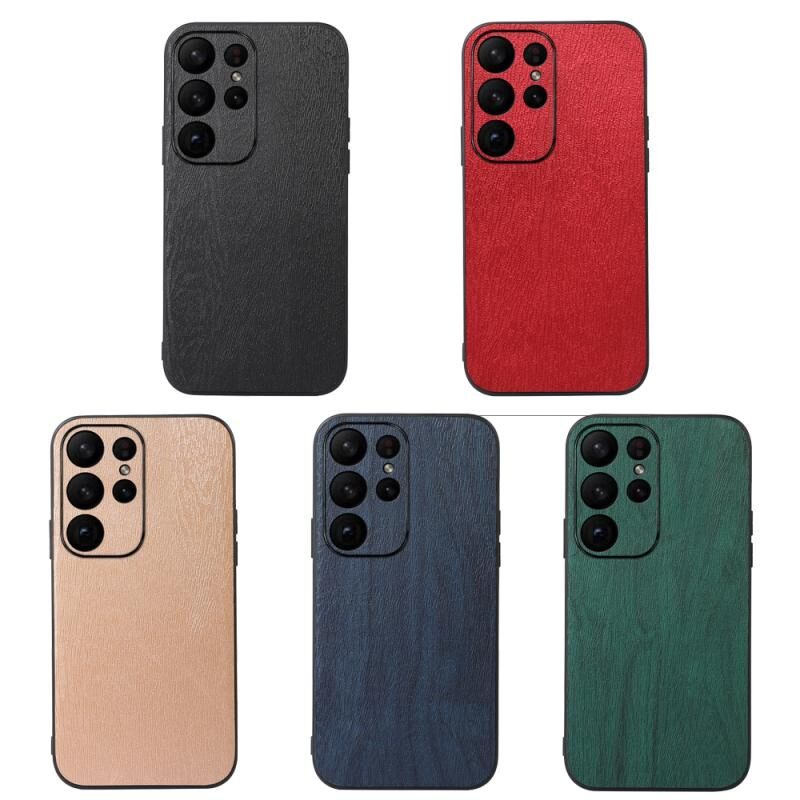 Για Samsung Galaxy S23 Ultra 5G Wood Texture PU υπόθεση τηλεφώνου (κόκκινο)