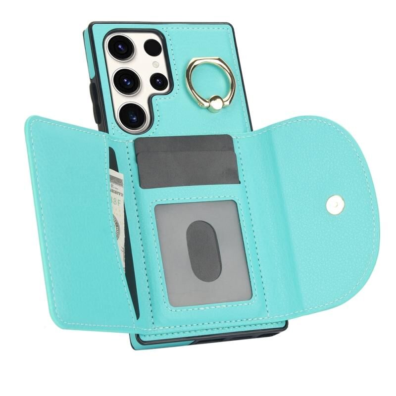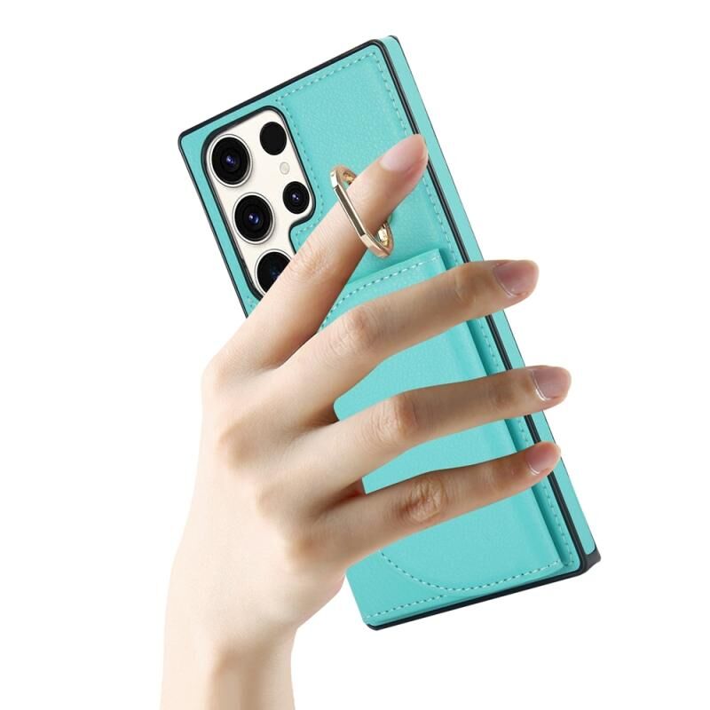 Για Samsung Galaxy S23 Ultra 5G YM007 Ring κάτοχος κάρτα τσάντα τσάντα δέρμα αίσθηση υπόθεση τηλεφώνου (πράσινο)