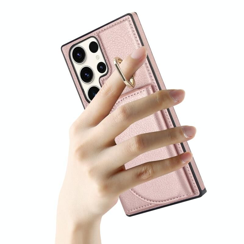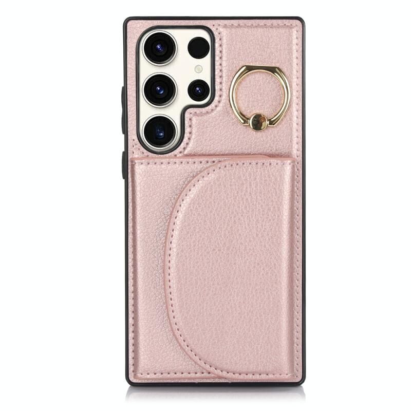 Για Samsung Galaxy S23 Ultra 5G YM007 Ring κάτοχος κάρτα τσάντα τσάντα δέρμα αίσθηση υπόθεση τηλεφώνου (Rose Gold)