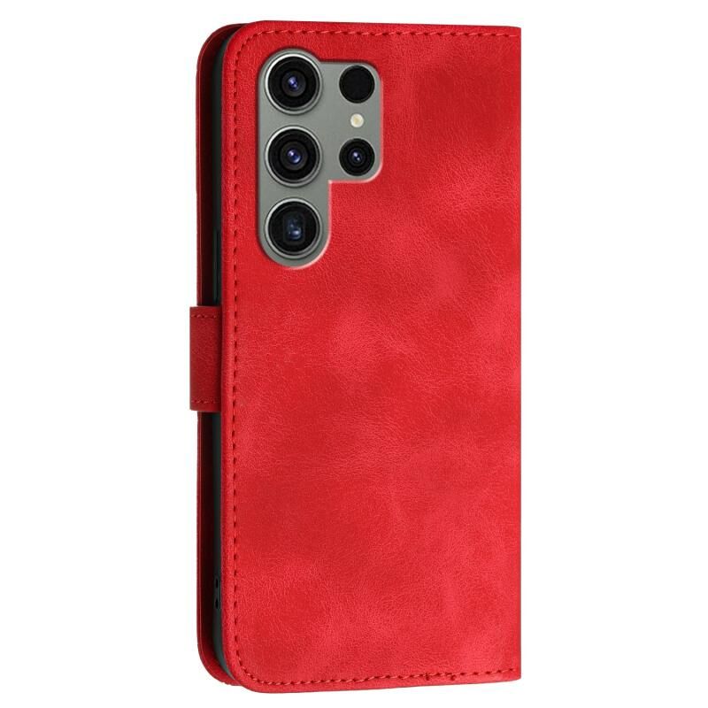 For Samsung Galaxy S23 Ultra 5G YX0080 Grid Butterfly Embossed Pattern Flip Leather Phone Case with Lanyard(Red)