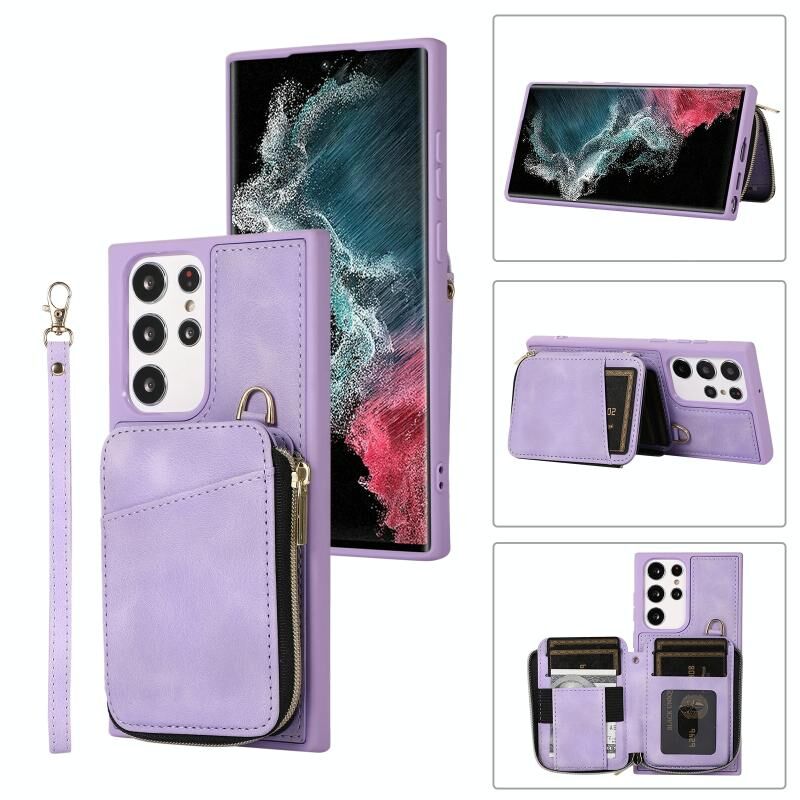 Για Samsung Galaxy S23 Ultra 5G φερμουάρ κάρτα τσάντα πίσω κάλυμμα υπόθεση τηλεφώνου (μωβ)