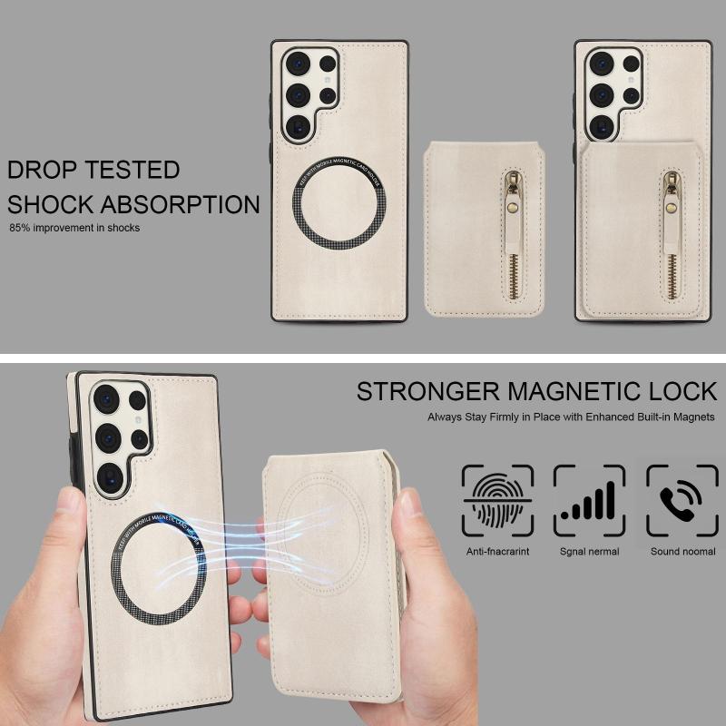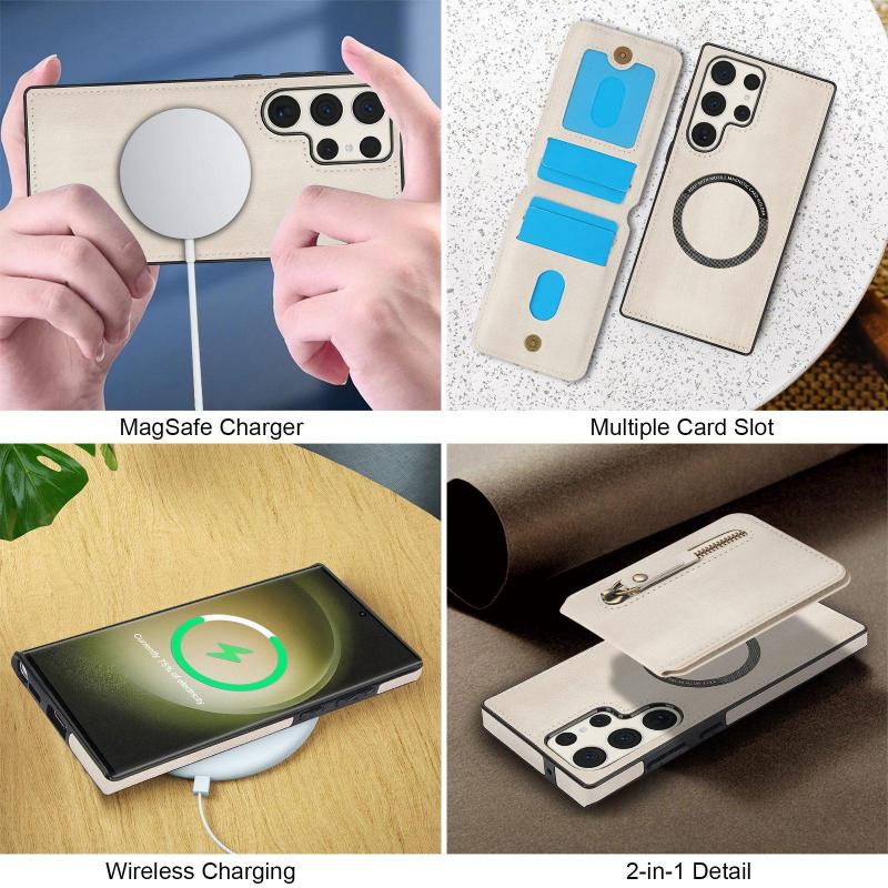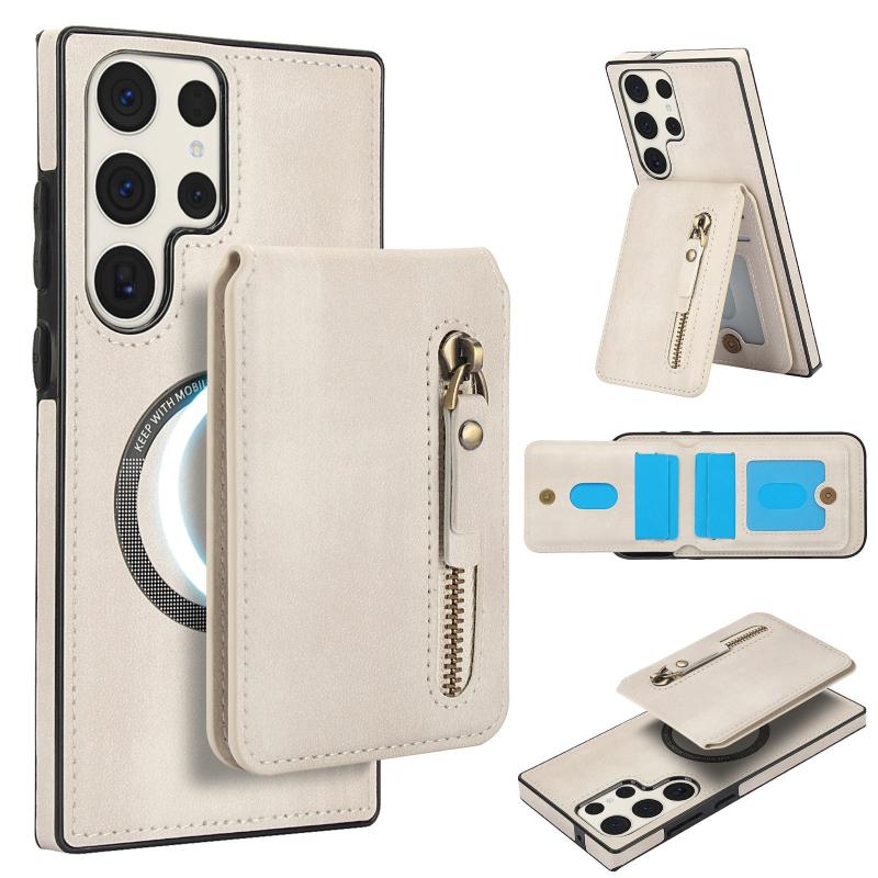 Για Samsung Galaxy S23 Ultra 5G Δερμάτινη Θήκη Πορτοφόλι με MagSafe (Λευκό)