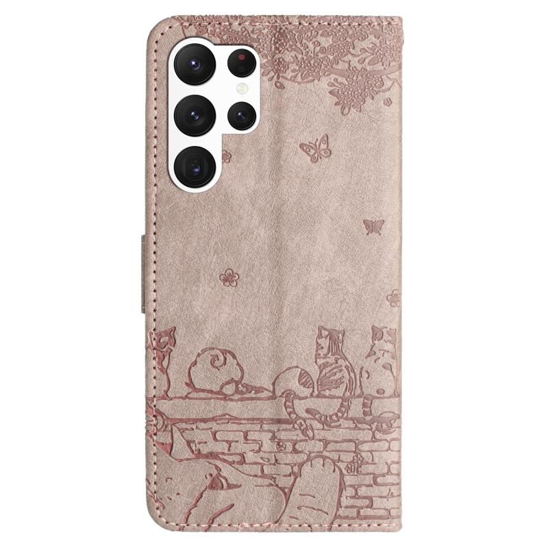 Θήκη κινητού Samsung Galaxy S23 Ultra με ανάγλυφο σχέδιο γατιού από δέρμα με κορδόνι (Κόκκινο)