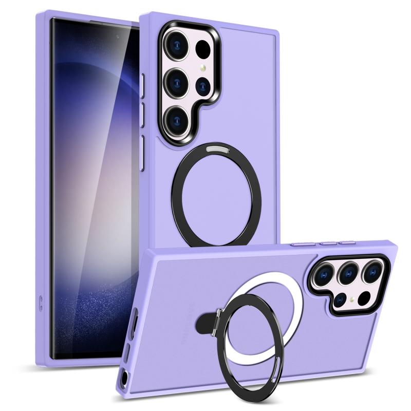 For Samsung Galaxy S23 Ultra MagSafe Holder Skin-feel PC Hybrid TPU Phone Case(Light Purple)