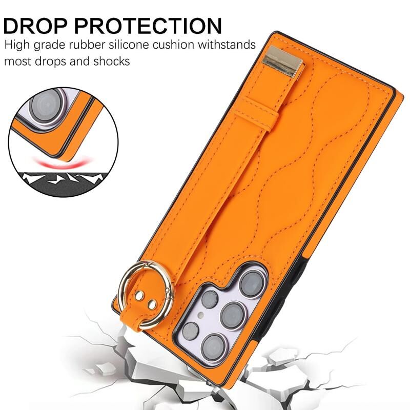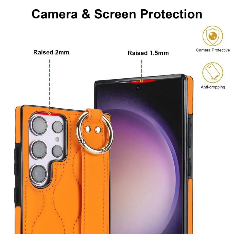 Για Samsung Galaxy S23 Ultra αντιολισθητική πλήρους κάλυψης δαχτυλίδι PU υπόθεση τηλεφώνου με ζώνη καρπού (πορτοκαλί)