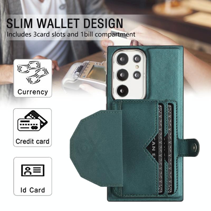 Θήκη κινητού Samsung Galaxy S23 Ultra από δέρμα, ανθεκτική στις κρούσεις, με θήκη για κάρτες (πράσινο)