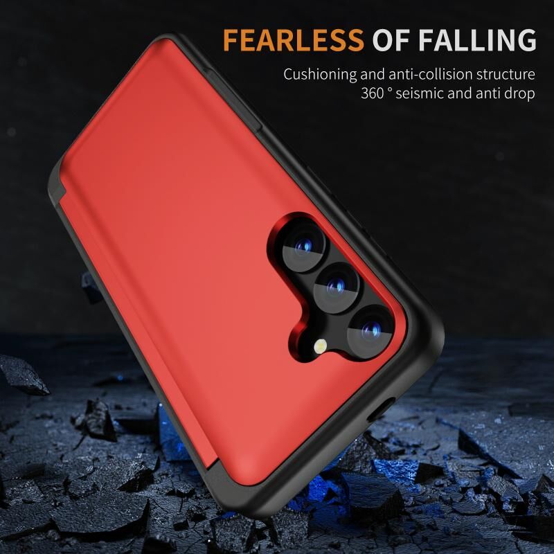Για Samsung Galaxy S24 5G 3 σε 1 Flip θήκη τηλεφώνου κάτοχος (κόκκινο)