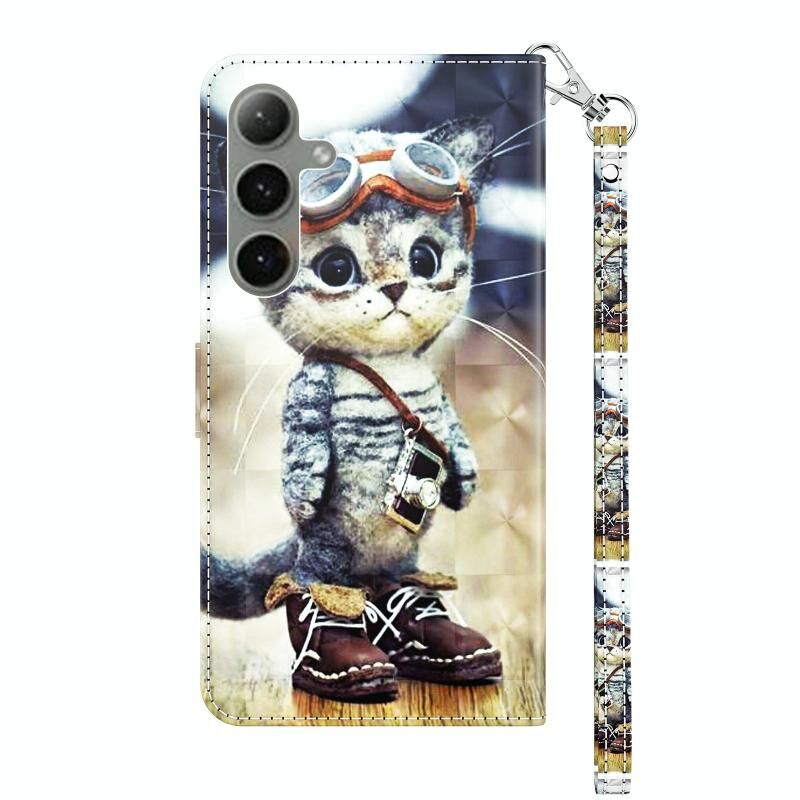 Θήκη τηλεφώνου Samsung Galaxy S24+ 5G από δέρμα με τρισδιάστατη ζωγραφική (Σκανταλιάρικο Γατάκι)