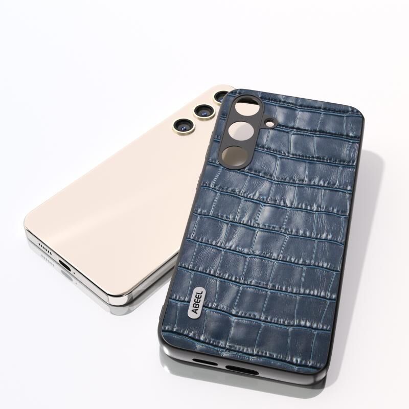 Θήκη τηλεφώνου από γνήσιο δέρμα με υφή κροκόδειλου για Samsung Galaxy S24 5G ABEEL (Καφέ)