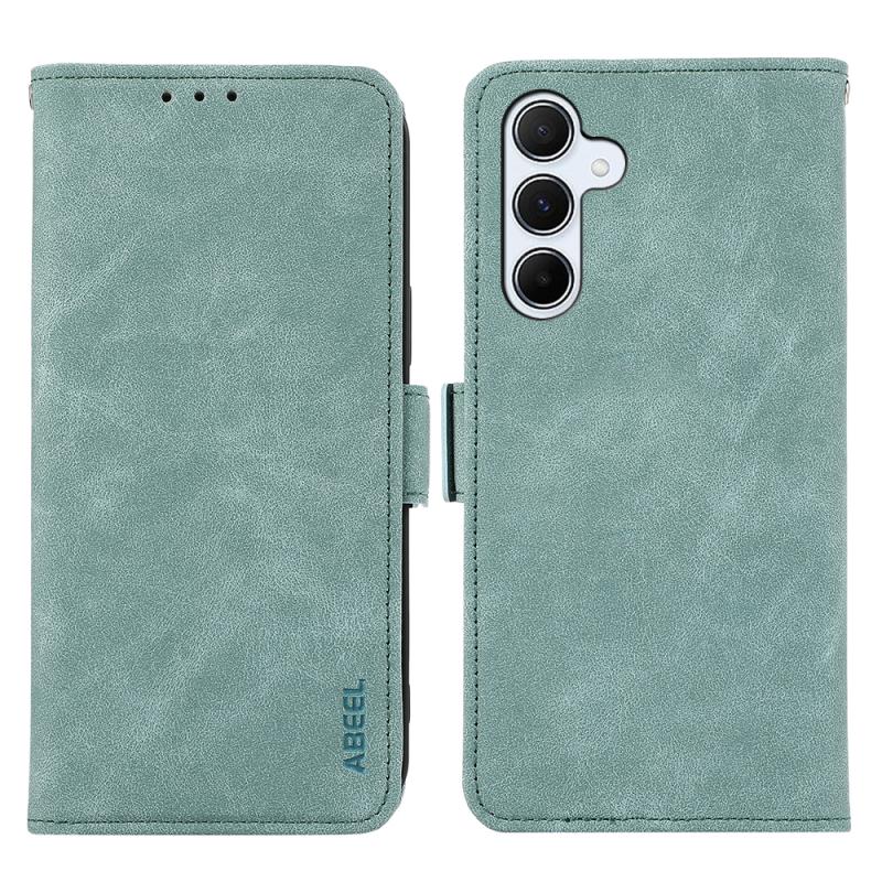 For Samsung Galaxy S24+ 5G ABEEL Frosted Magnetic RFID Leather Phone Case(Cyan)