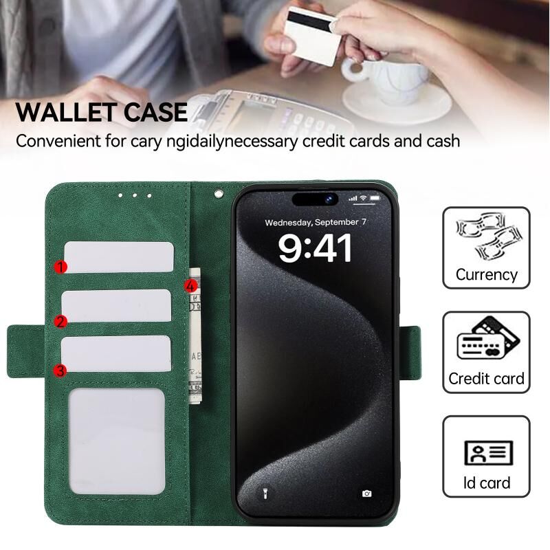4. Λειτουργία Πορτοφολιού: Η δερμάτινη θήκη είναι εξοπλισμένη με υποδοχές καρτών για την τοποθέτηση καρτών και ενός μικρού ποσού μετρητών.