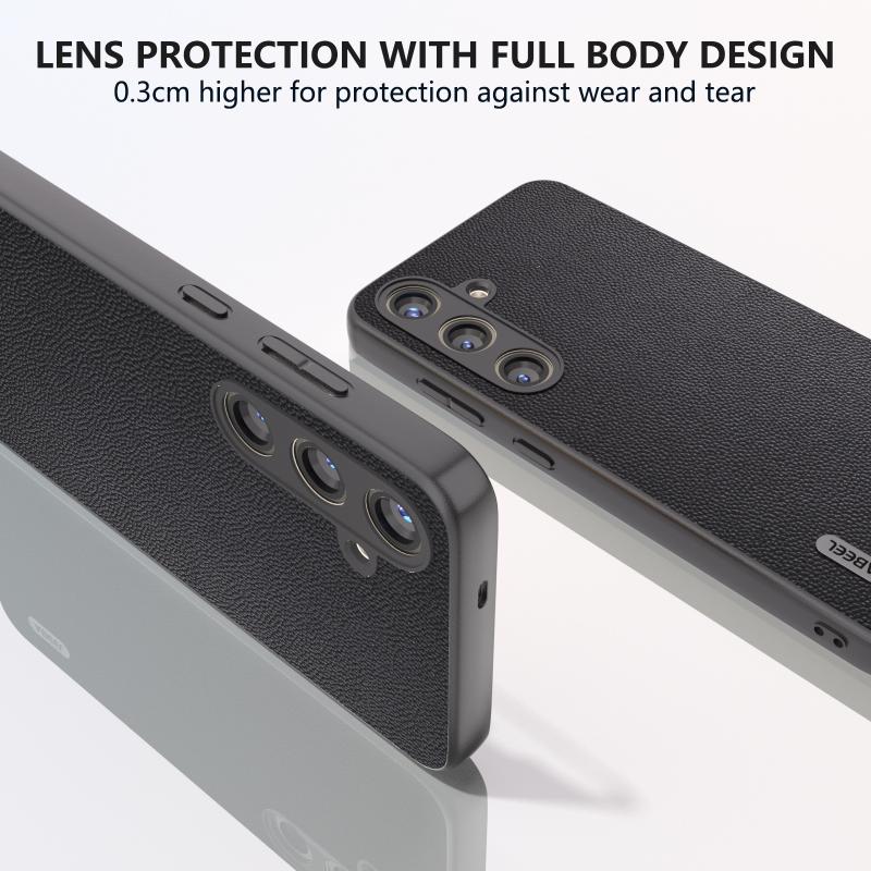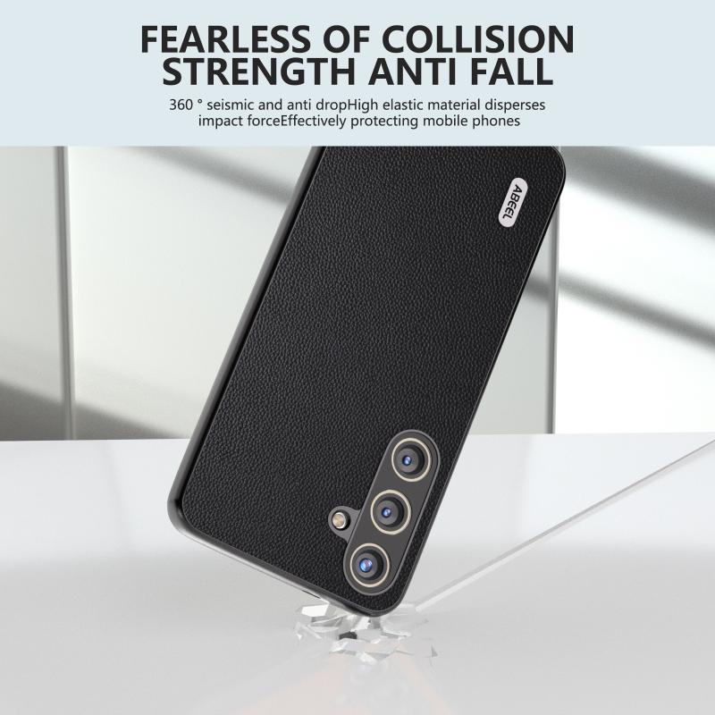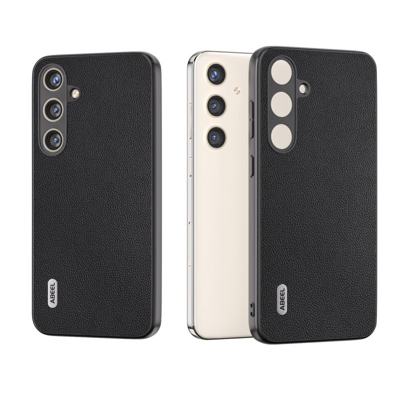 Θήκη τηλεφώνου από γνήσιο δέρμα ABEEL για Samsung Galaxy S24+ 5G, κομψή μαύρη με μαύρο περίγραμμα (Μαύρο)