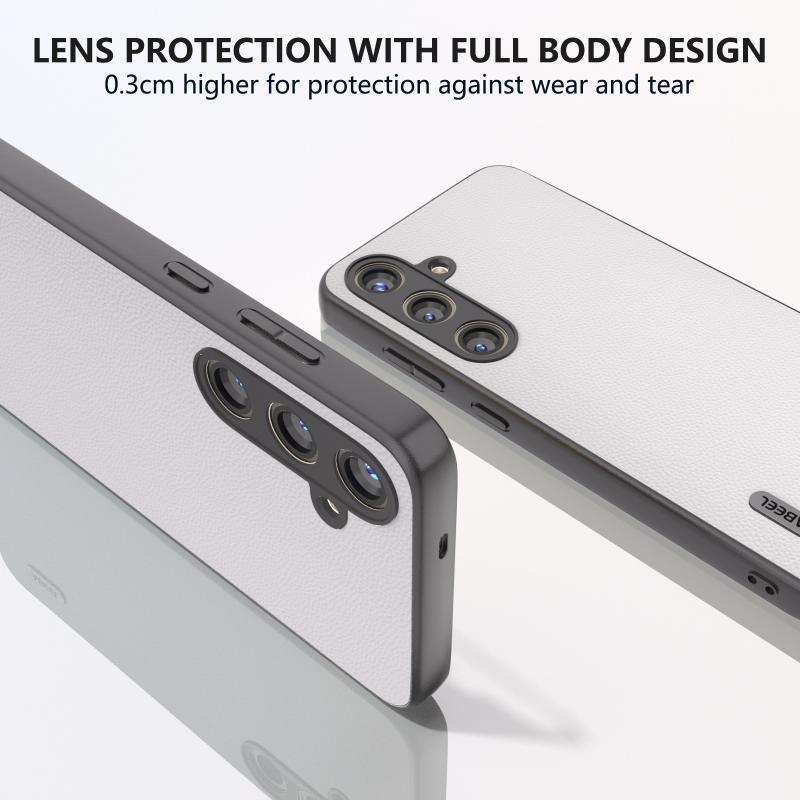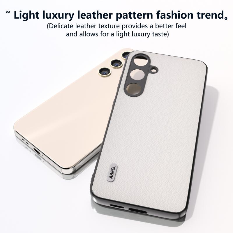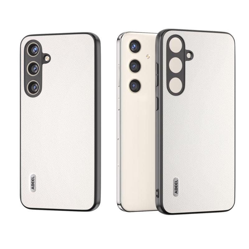 For Samsung Galaxy S24 5G ABEEL Genuine Leather Elegant Black Edge Phone Case(White)