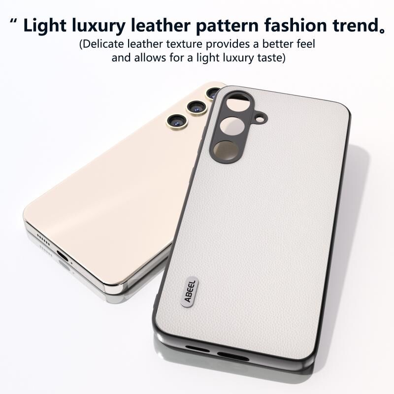 Θήκη τηλεφώνου Samsung Galaxy S24 5G ABEEL από γνήσιο δέρμα, κομψή μαύρη με λευκή επένδυση.