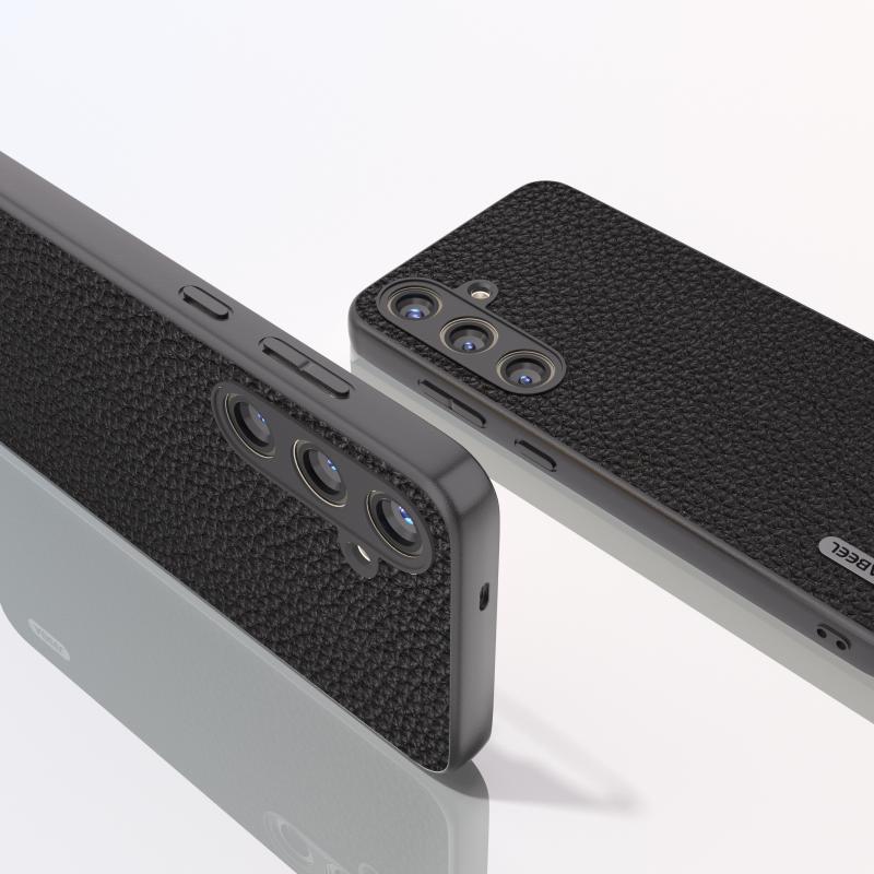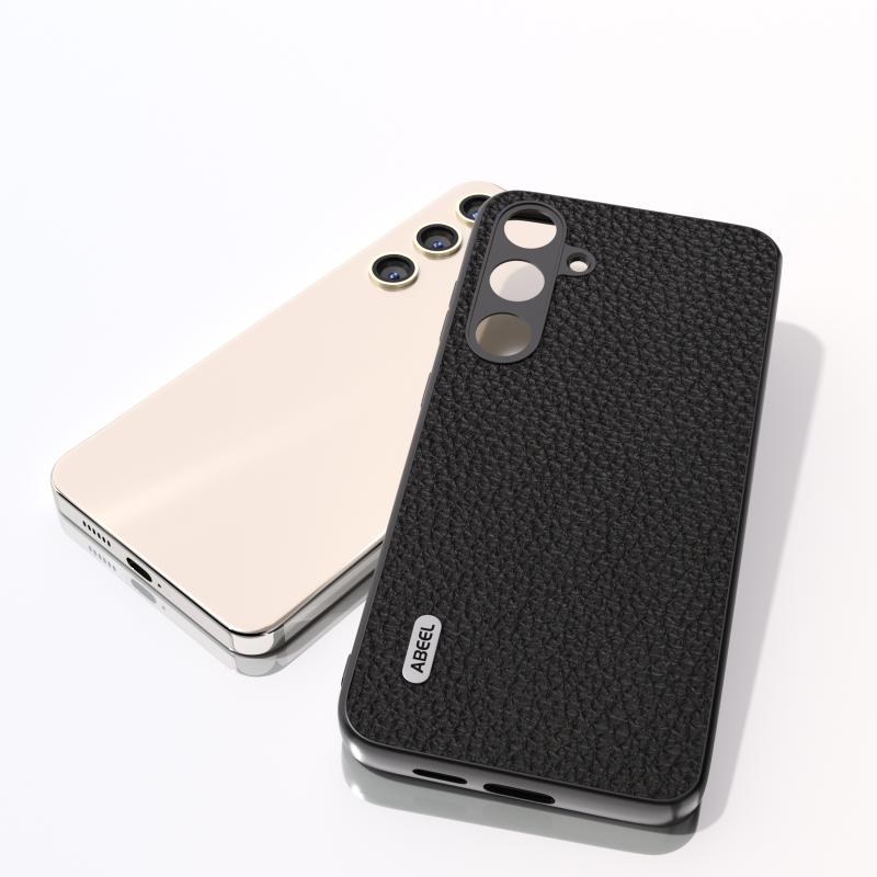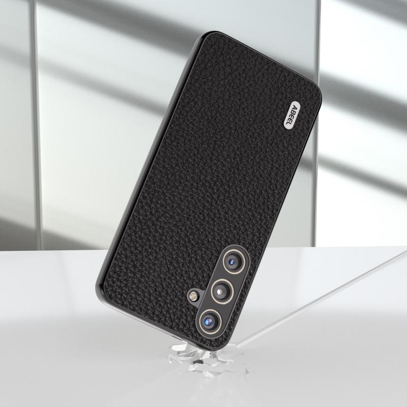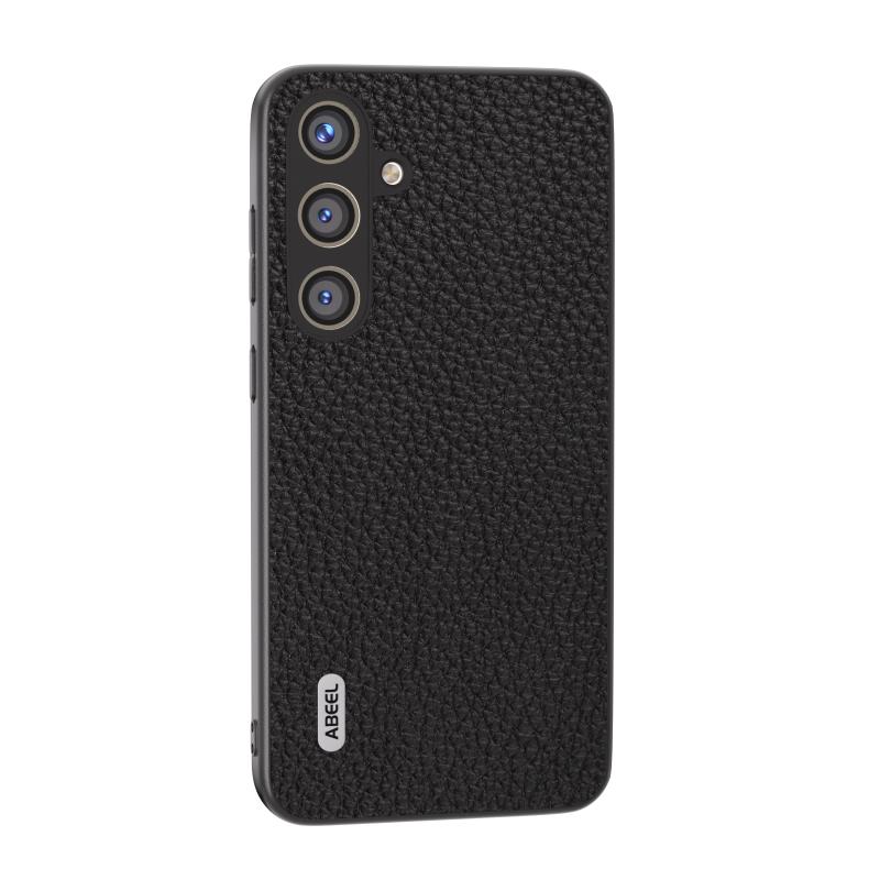 Θήκη τηλεφώνου από γνήσιο δέρμα ABEEL με υφή λυτσί για Samsung Galaxy S24+ 5G (Μαύρο)