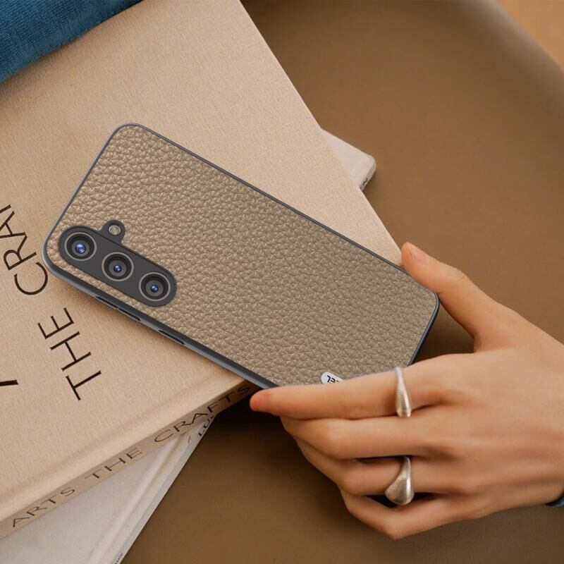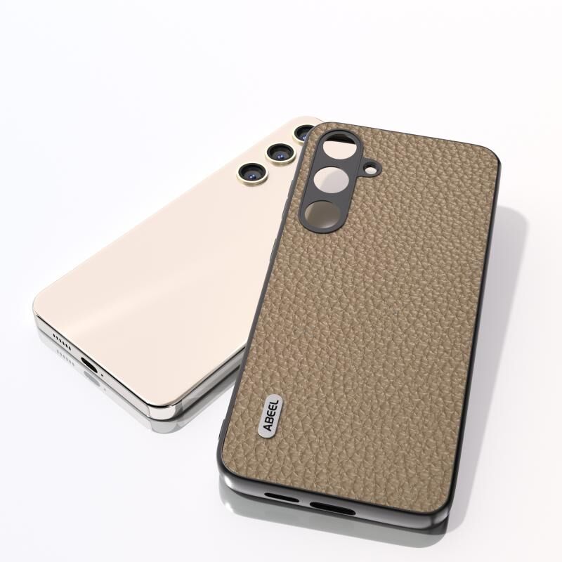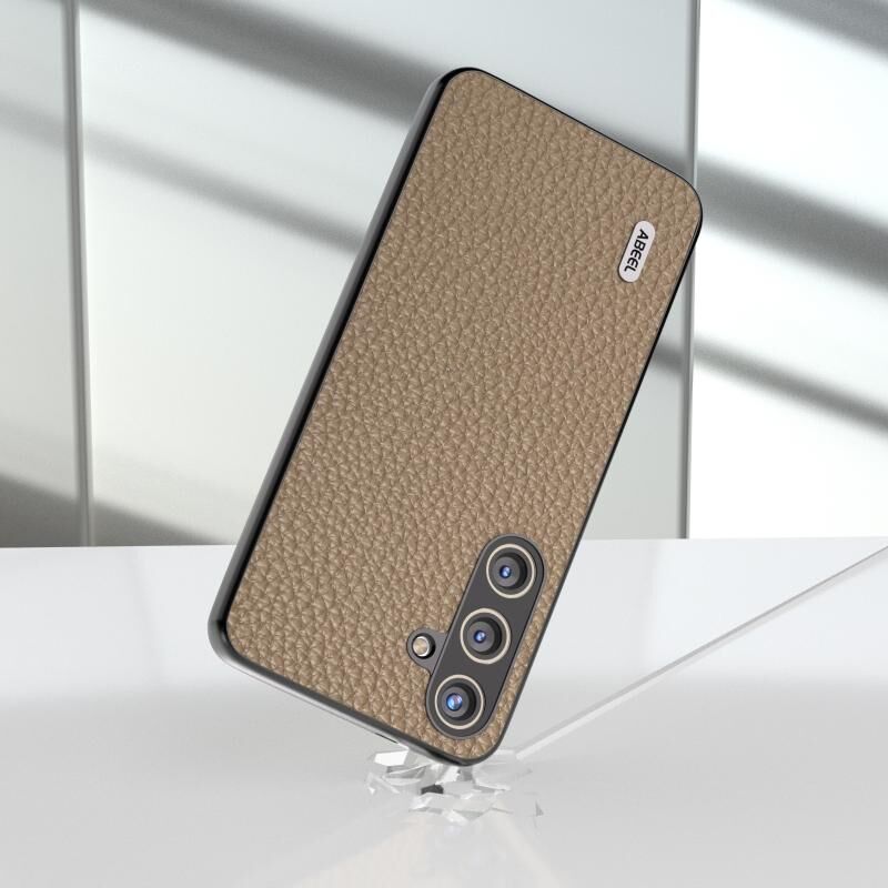 Θήκη τηλεφώνου από γνήσιο δέρμα ABEEL με υφή λυτσί για Samsung Galaxy S24+ 5G (Γκρι)
