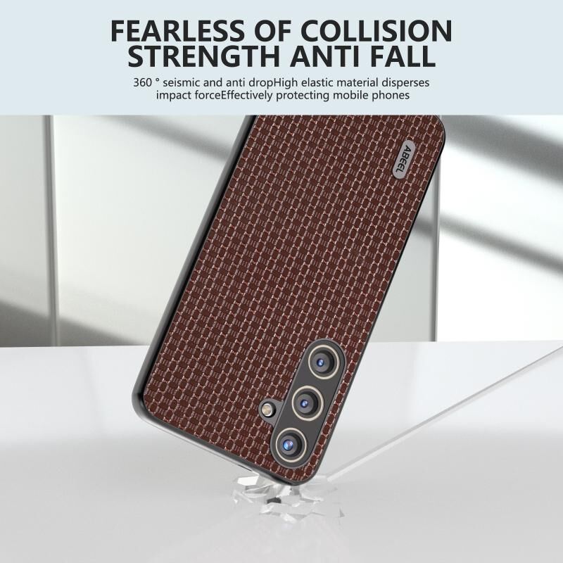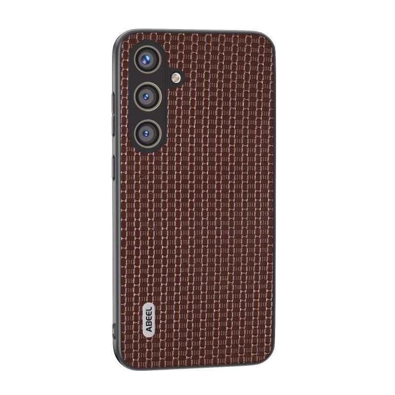 Θήκη τηλεφώνου Samsung Galaxy S24 5G ABEEL από γνήσιο δέρμα πολυτελείας, μαύρο περίγραμμα (Καφέ)
