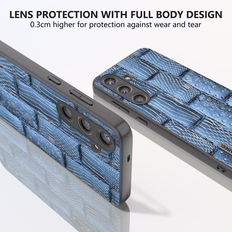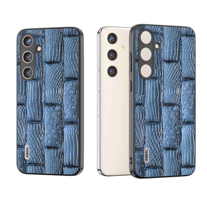 Θήκη τηλεφώνου Samsung Galaxy S24+ 5G ABEEL από γνήσιο δέρμα, σειρά Mahjong με υφή (Μπλε)