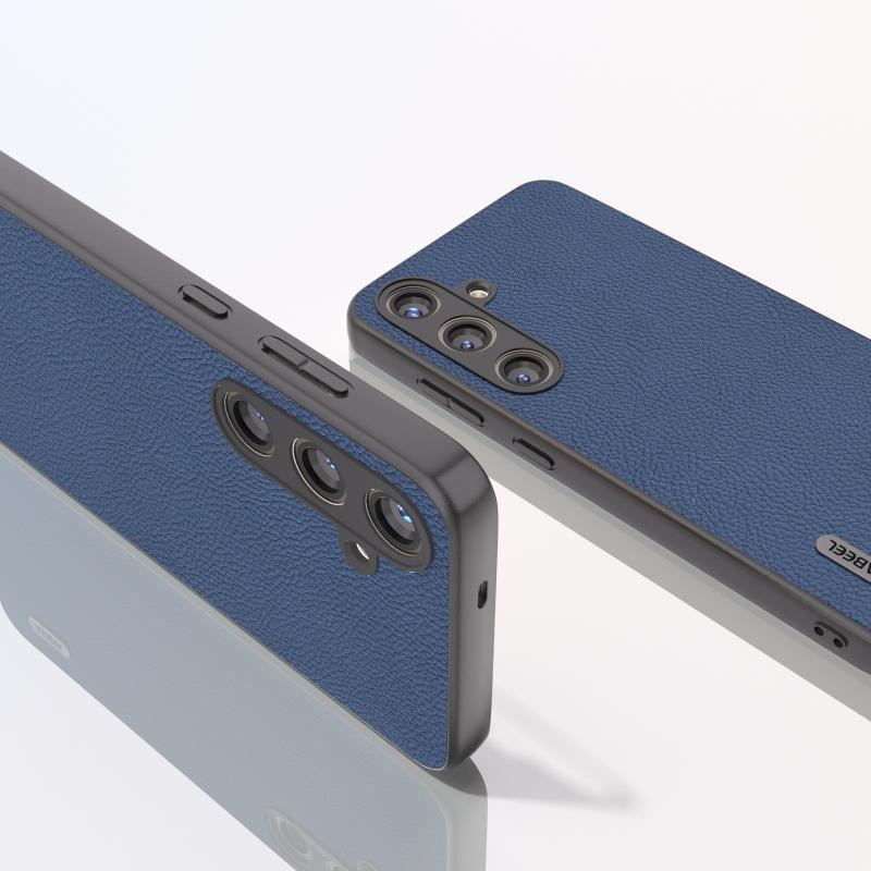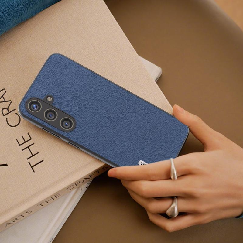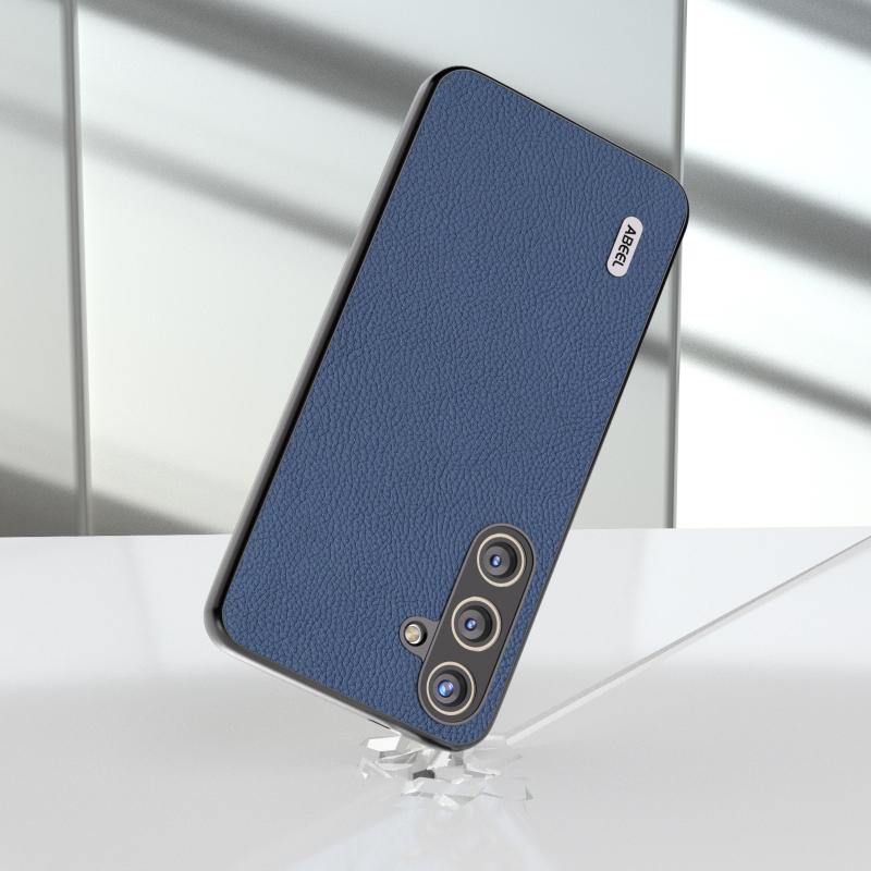 Θήκη τηλεφώνου Samsung Galaxy S24+ 5G ABEEL από γνήσιο δέρμα + PC με υφή λυτσί (Μπλε)