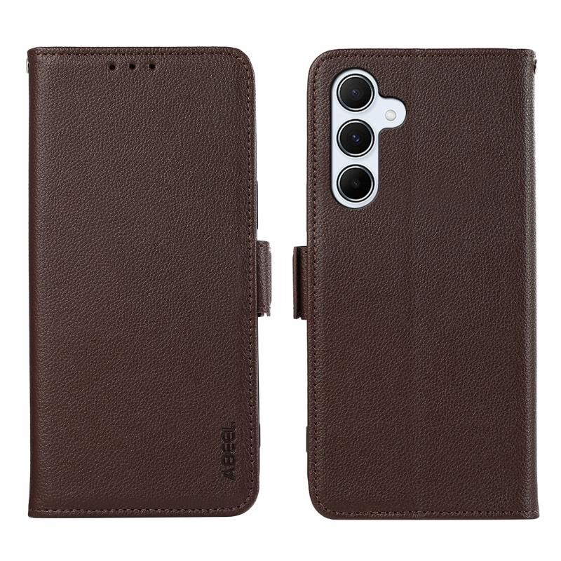 Θήκη κινητού τηλεφώνου Samsung Galaxy S24 5G ABEEL με μαγνητικό κλείσιμο, δερμάτινη με υφή λitchi και προστασία RFID (Μαύρο)