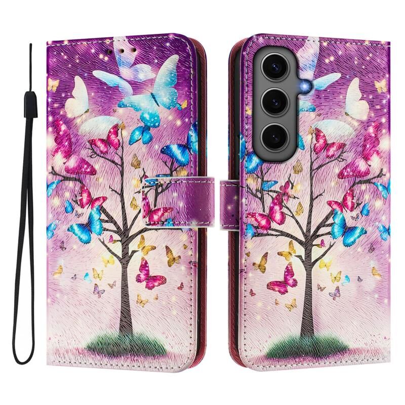 Θήκη τηλεφώνου Samsung Galaxy S24+ 5G από δέρμα με σχέδιο ζωγραφικής και πολύχρωμο σχέδιο (Κλαδί πεταλούδας)
