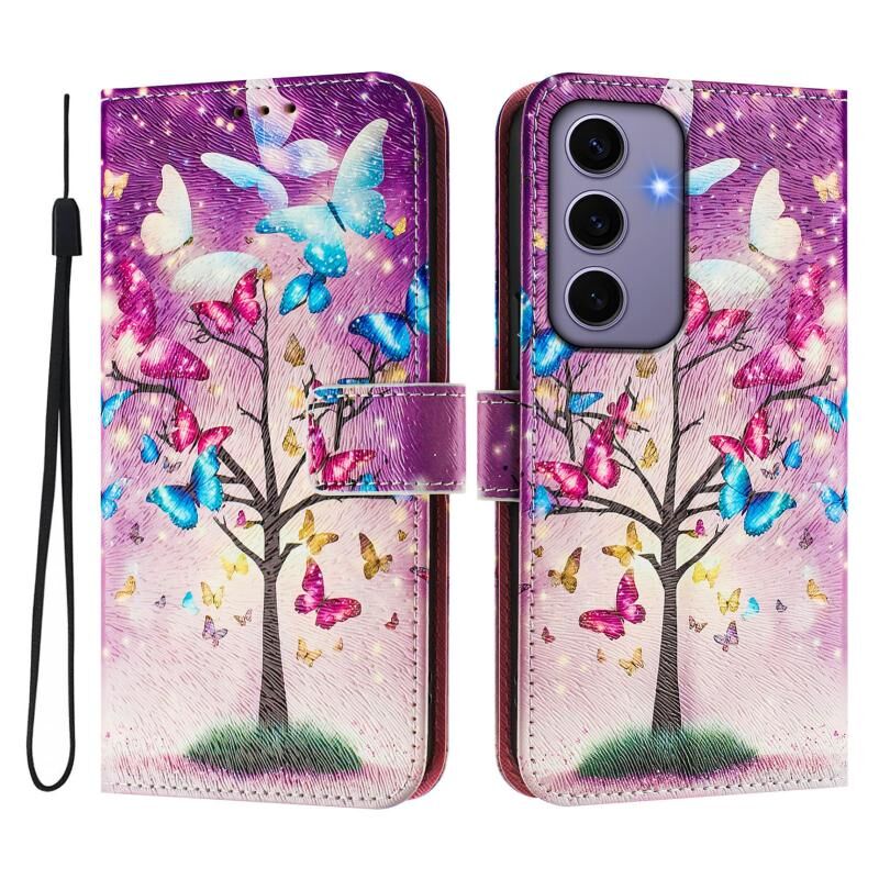 For Samsung Galaxy S24 5G Art Colored Drawing Pattern Leather Phone Case(Butterfly branch)