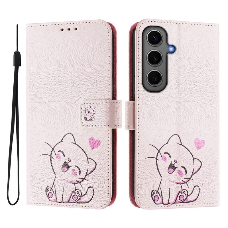 For Samsung Galaxy S24+ 5G Art Colored Drawing Pattern Leather Phone Case(Cute cat)