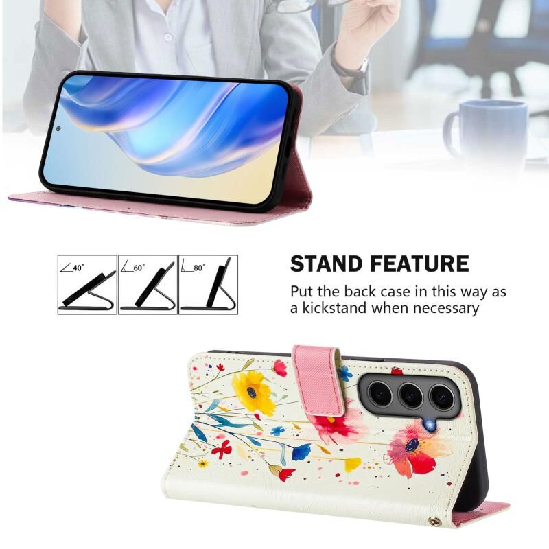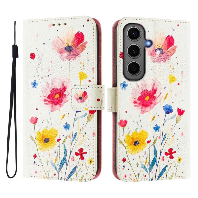 Θήκη τηλεφώνου Samsung Galaxy S24+ 5G από δέρμα με σχέδιο ζωγραφικής και πολύχρωμα χρώματα (Λουλούδια και φυτά)
