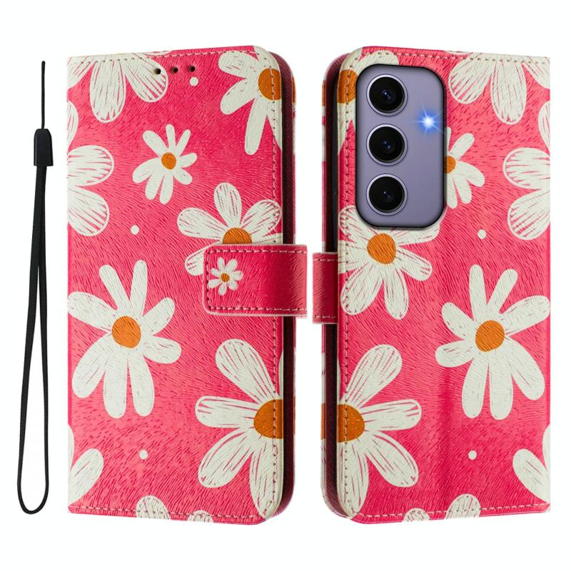 For Samsung Galaxy S24 5G Art Colored Drawing Pattern Leather Phone Case(Pink daisy)