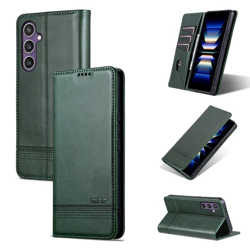 Για Samsung Galaxy S24 5G AZNS Μαγνητικό μοσχάρι υφή Flip δέρμα τηλέφωνο υπόθεση (σκούρο πράσινο) (AZNS)
