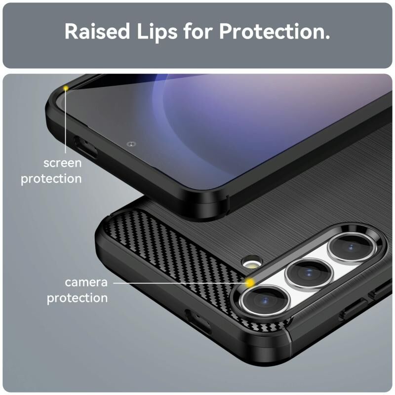 Για Samsung Galaxy S24 5G βουρτσισμένη υφή Carbon Fiber TPU τηλέφωνο υπόθεση (μαύρο)