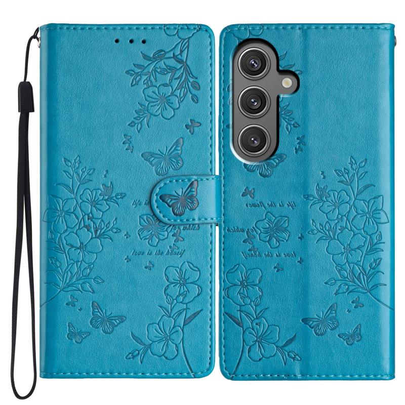 For Samsung Galaxy S24+ 5G Butterflies and Flowers Leather Phone Case(Blue)