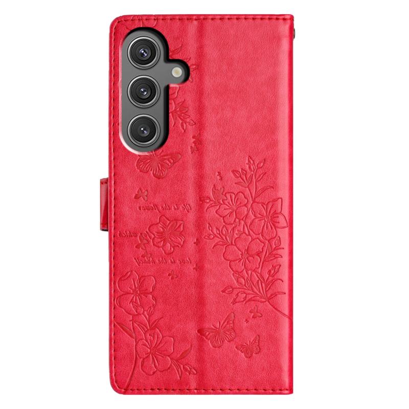 For Samsung Galaxy S24 5G Butterflies and Flowers Leather Phone Case(Red)