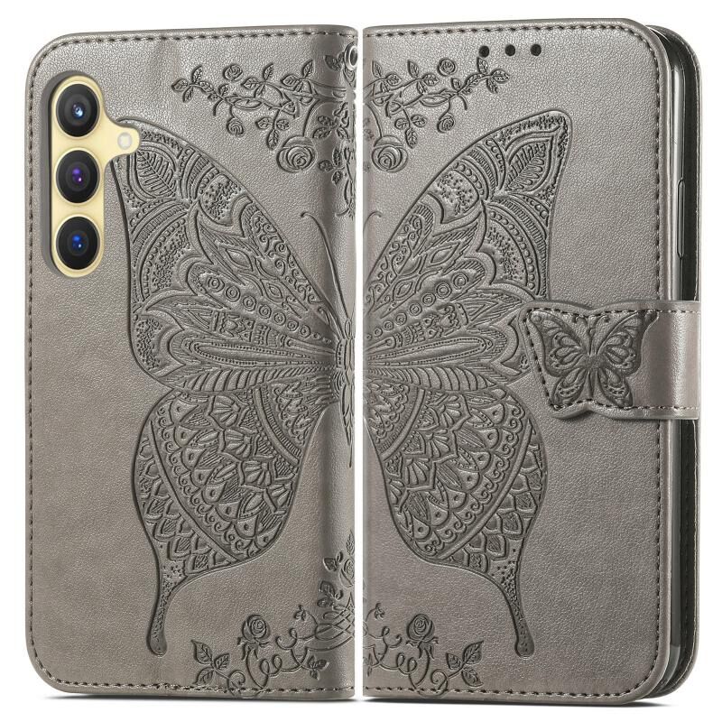 For Samsung Galaxy S24+ 5G Butterfly Love Flower Embossed Leather Phone Case(Gray)
