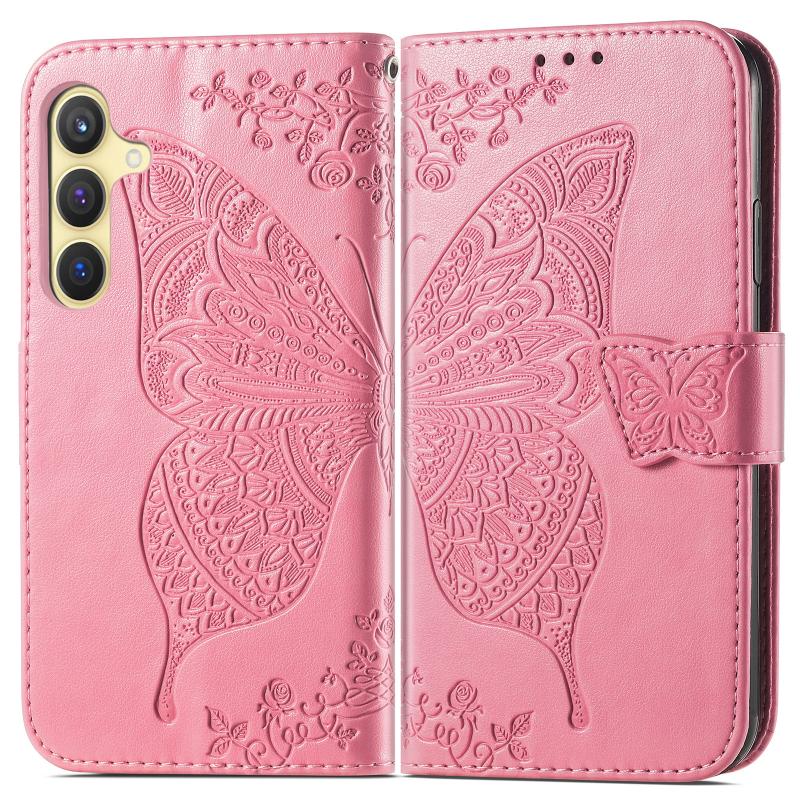 For Samsung Galaxy S24 5G Butterfly Love Flower Embossed Leather Phone Case(Pink)