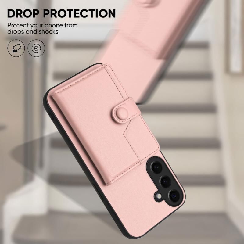 For Samsung Galaxy S24 5G Button Card Bag RFID Anti-theft Phone Case(Pink)