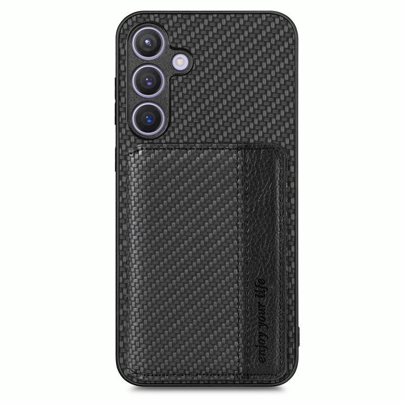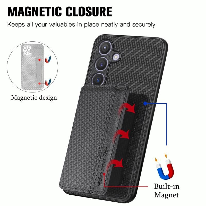 Για Samsung Galaxy S24 5G Carbon Fiber Μαγνητική κάρτα πορτοφόλι RFID μπλοκάρισμα τηλέφωνο υπόθεση (Μαύρο)