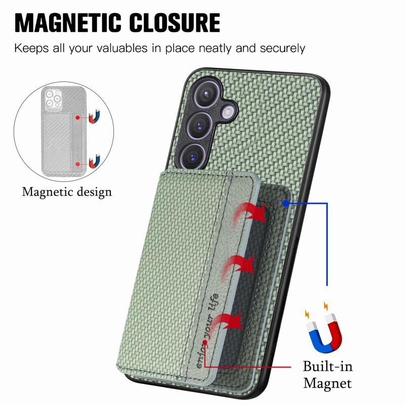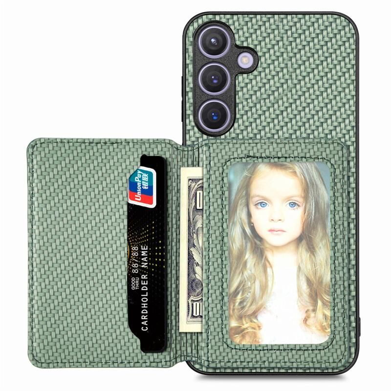 For Samsung Galaxy S24+ 5G Carbon Fiber Magnetic Card Wallet RFID Blocking Phone Case(Green)